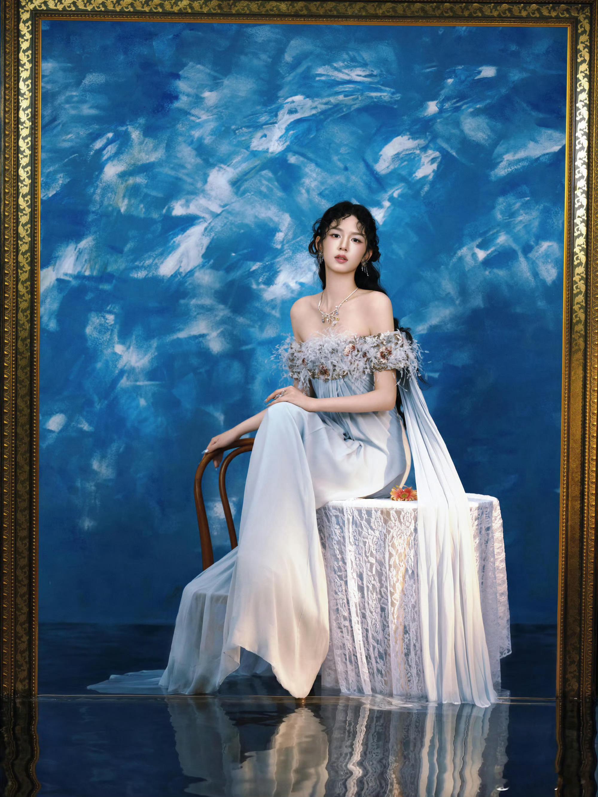 周也蓝色小精灵周也光影摇曳间的小精灵 天哪!!周也这个裙裙!搭配头饰~简直小精灵