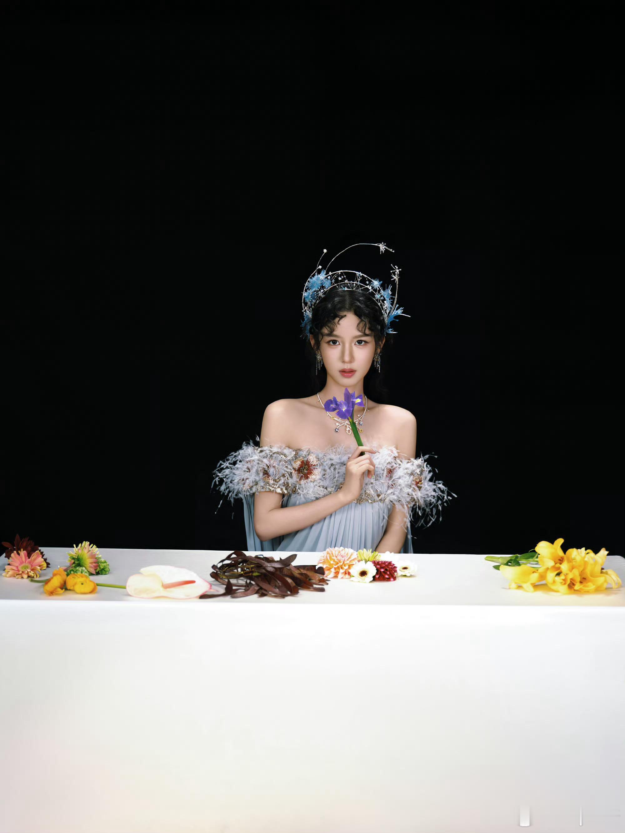 周也蓝色小精灵周也光影摇曳间的小精灵 天哪!!周也这个裙裙!搭配头饰~简直小精灵般的存在吧周也