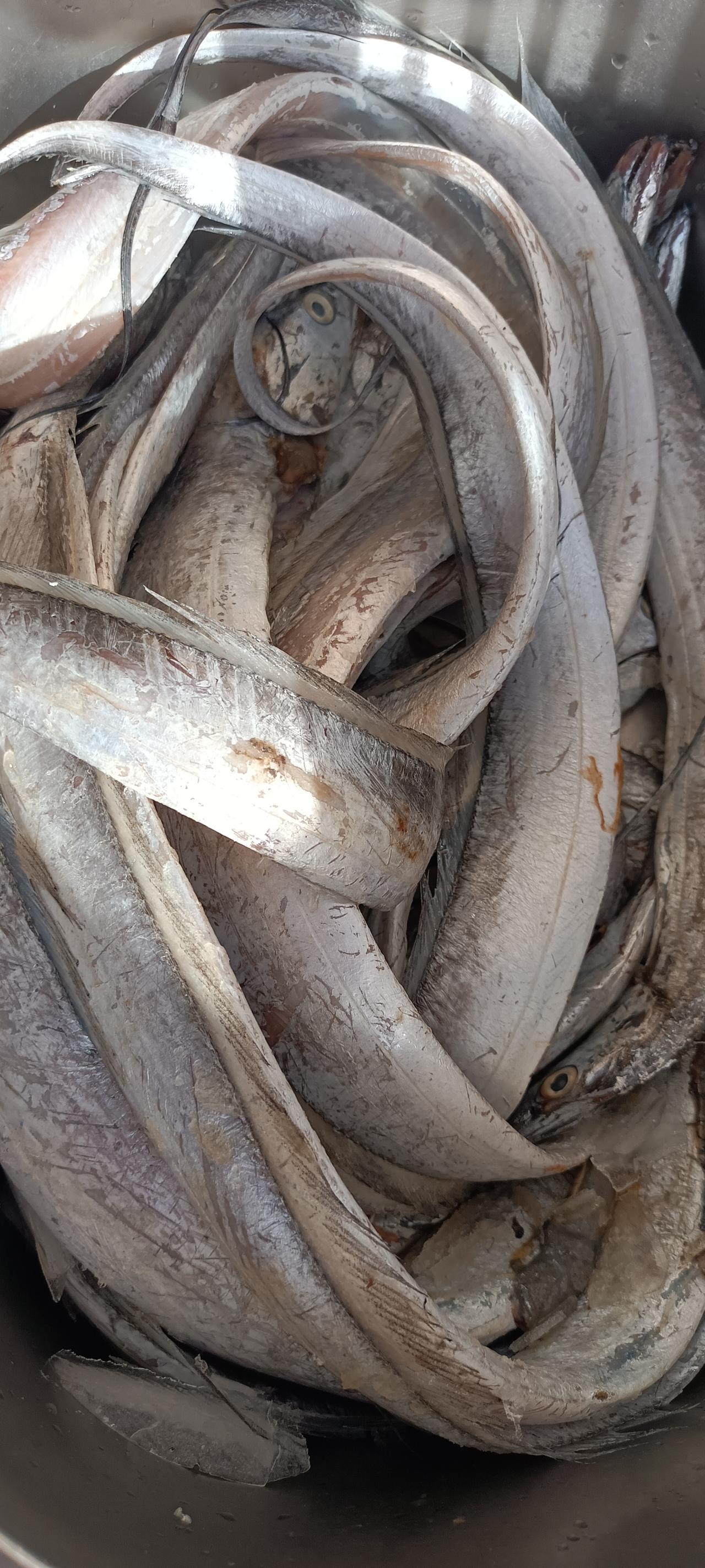 有人给我家送了一箱带鱼,送鱼的人还说呢,也就是咱们这关系,要是别人家,我才不会送鱼呢! 送鱼送鱼,别管鱼值多少钱,就是这个寓意特别好! 年年有余年年有鱼嘛! 我也说了感谢,我还开玩笑说,你家送我家鱼,那我家送给你家什么礼物呢?是不是也应该送点有寓意的礼物啊? 她说那就直接送钱吧!送钱比送鱼更进一步! 我说送钱太直白了,显得没文化,没意思!我可以送你家大葱,充足充足,这个寓意也特别好! 我们关系特别好,就是开玩笑而已。 昨天白天没时间洗鱼,就放在了车里。 昨晚把鱼拿进来,我现在准备洗鱼。 带鱼特别新鲜,上边的那层白膜很不容易去掉,我数了一下,二十多条呢!要是一点点的都弄掉,得老半天! 我想问一下好友们,去除这个膜有什么好办法吗? 我在线等!