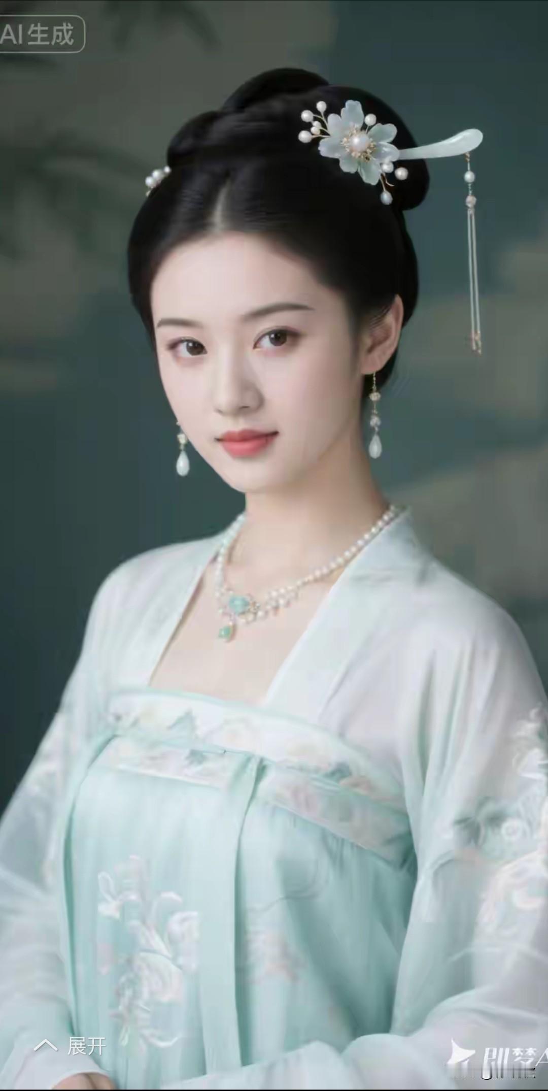 汉服轻浅衬娇容, 眉清目秀显风情。 青丝如瀑随风舞 眸若秋水映繁星。
