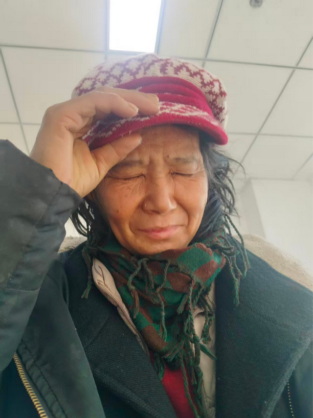 受助者特征:穿黑色厚外套(领口处有浅灰色的毛绒内衬),戴针织贝雷帽,系绿棕黑三色交织格纹围巾