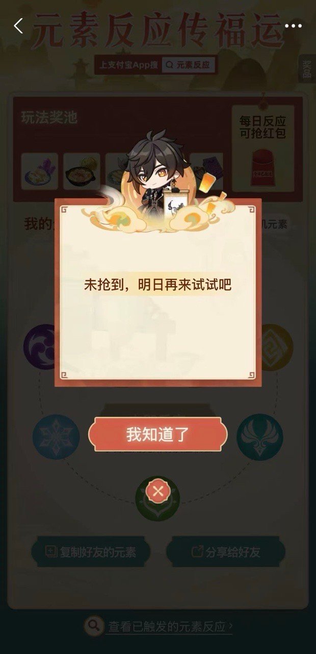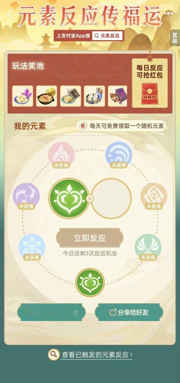 支付宝原神集福太香了!每日反应抢红包,天天三次合成机会,2.5触发结晶反应必得白