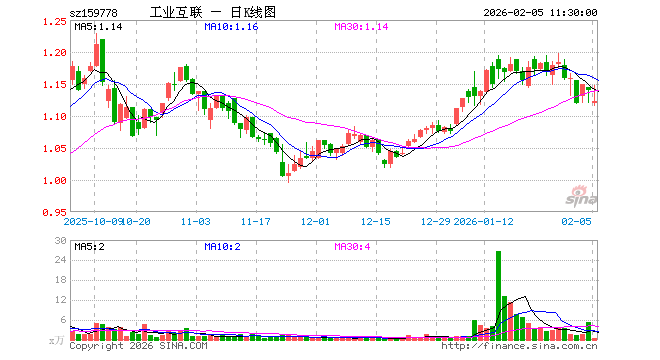 2月5日,截止午间收盘,工业互联网ETF鹏华(159778)跌1.49%,报1.123元,成交额58.49万元。工业互联网ETF鹏华(159778)重仓股方面,汇川技术截止午盘跌2.04%,比亚迪涨0.98%,兆易创新跌2.49%,北方华创跌2.00%,工业富联涨1.01%,宁德时代跌1.93%,科大讯飞跌1.69%,海康威视涨1.25%,豪威集团跌0.35%,国电南瑞跌2.90%。
