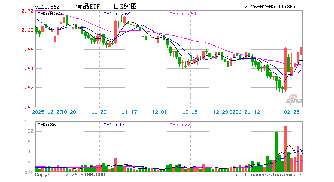 2月5日,截止午间收盘,食品饮料ETF银华(159862)涨0.76%,报0.662元,成交额2181.70万元。食品饮料ETF银华(159862)重仓股方面,贵州茅台截止午盘涨1.41%,五粮液涨0.32%,伊利股份涨0.37%,泸州老窖跌0.68%,山西汾酒跌0.18%,海天味业涨4.47%,东鹏饮料涨2.92%,洋河股份涨0.56%,安琪酵母涨1.59%,今世缘涨0.15%。
