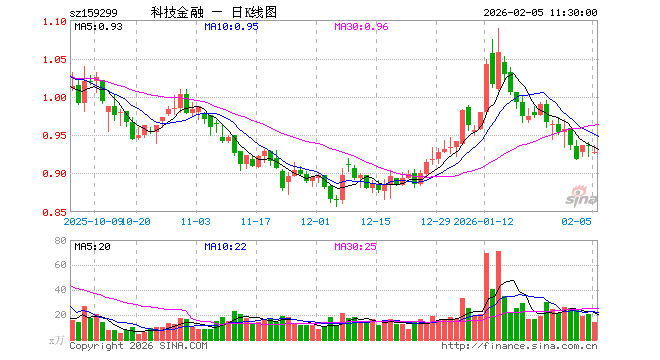 2月5日,截止午间收盘,金融科技ETF易方达(159299)跌0.85%,报0.928元,成交额1282.47万元。金融科技ETF易方达(159299)重仓股方面,东方财富截止午盘跌0.52%,同花顺跌2.37%,指南针跌1.19%,恒生电子跌1.18%,润和软件跌1.51%,东华软件跌1.46%,新大陆跌1.48%,广电运通跌0.93%,银之杰跌0.18%,四方精创涨0.33%。