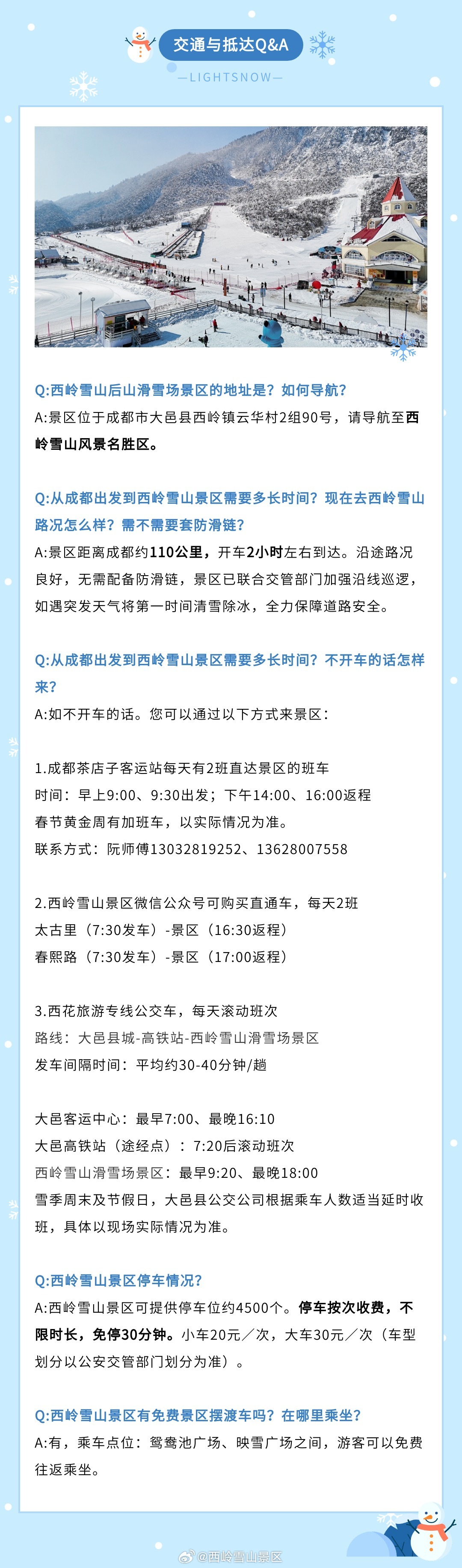 西岭雪山热议问题解答来啦~包含近期重点关注的二次入园操作流程&新增三处戏雪区面积&景区价格公示&天气预报&交通与抵达&票务政策及预定&景区基本信息&住宿与餐饮&服务与设施&安全须知&活动信息希望这份Q&A能解答您的疑问!西岭雪山将持续优化服务,致力为您提供更好的冰雪体验。如有其他问题,欢迎在评论区留言~#西岭雪山#滑雪票务#出行提示#