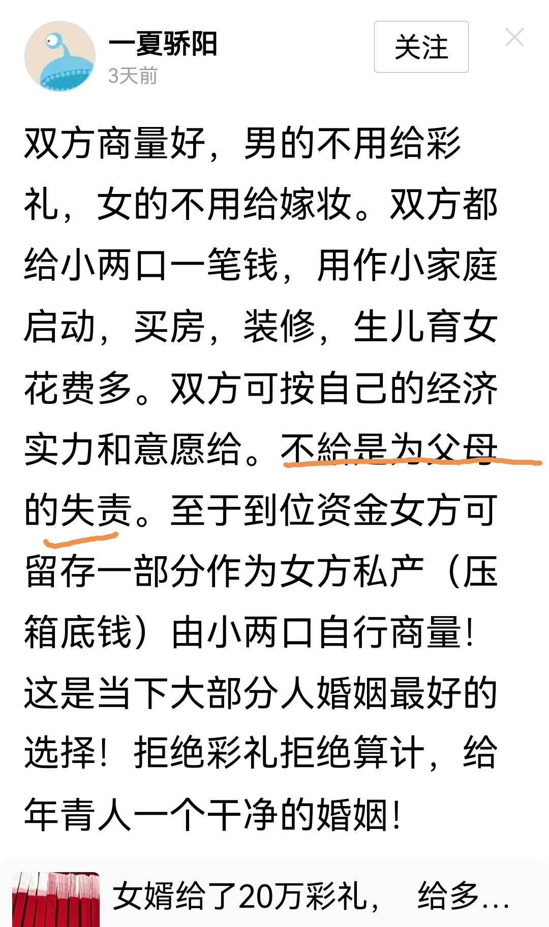 道德绑架! 你可以自己选择不给聘礼或者嫁妆,但是不能道德绑架别人!
