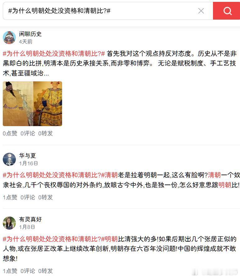 抖嗦嗦热推话题:为什么明朝处处没资格和清朝比? (图1)然后我去搜了一下,被群嘲