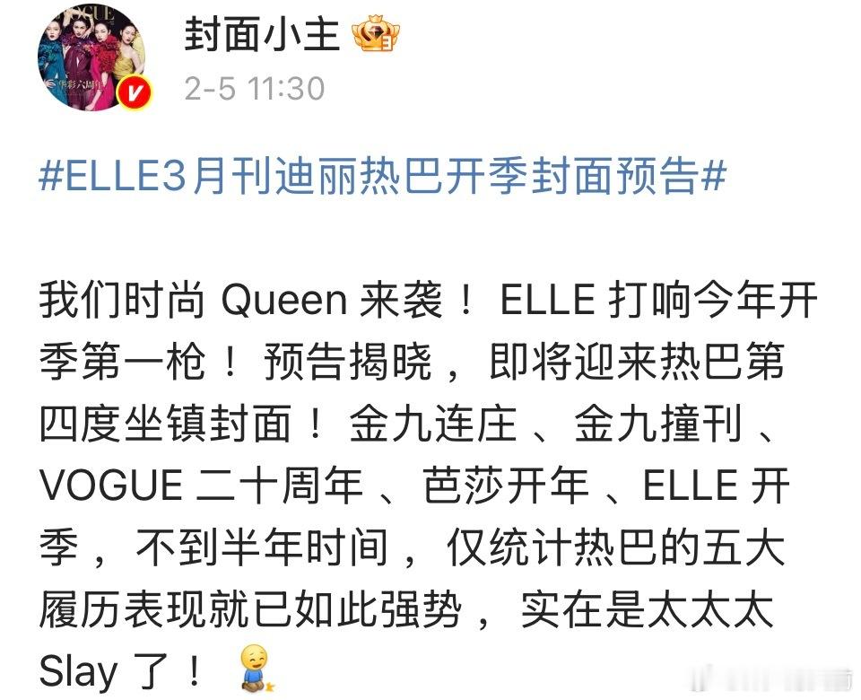 ELLE3月刊迪丽热巴开季封面预告