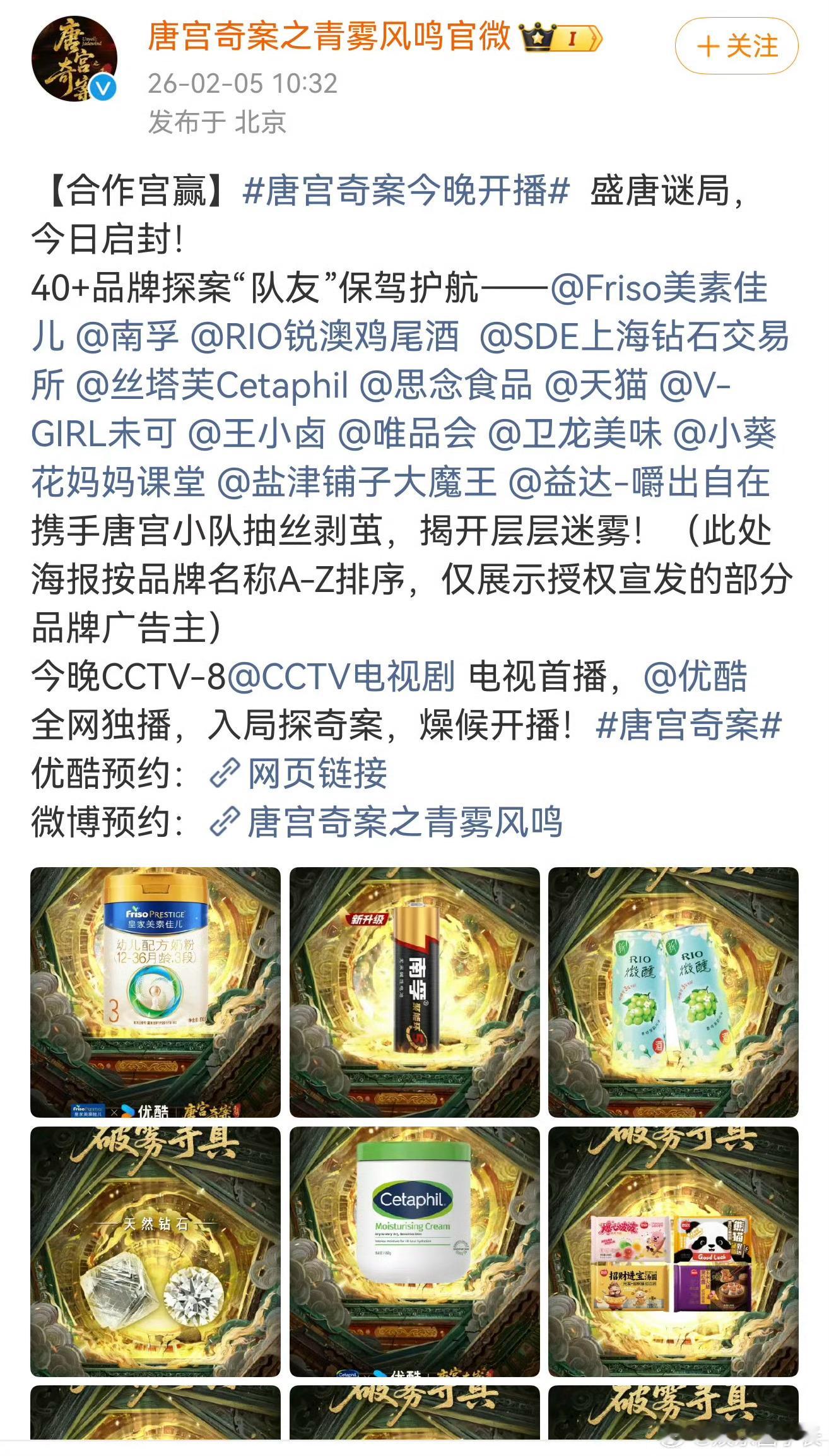 《唐宫奇案》还没开播站内热度已破6500,招商品牌竟然有40+,白鹿扛剧能力也太