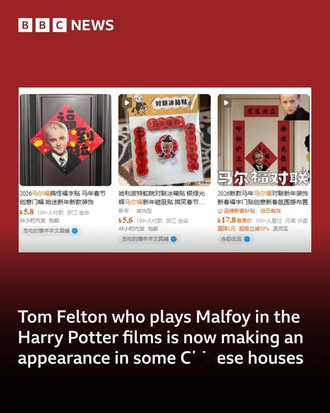 BBC报道马尔福吉祥物消息 当西方巫师遇上东方春节——“马上有福”的德拉科·马尔福,成了中国家庭的新年吉祥物!🧧