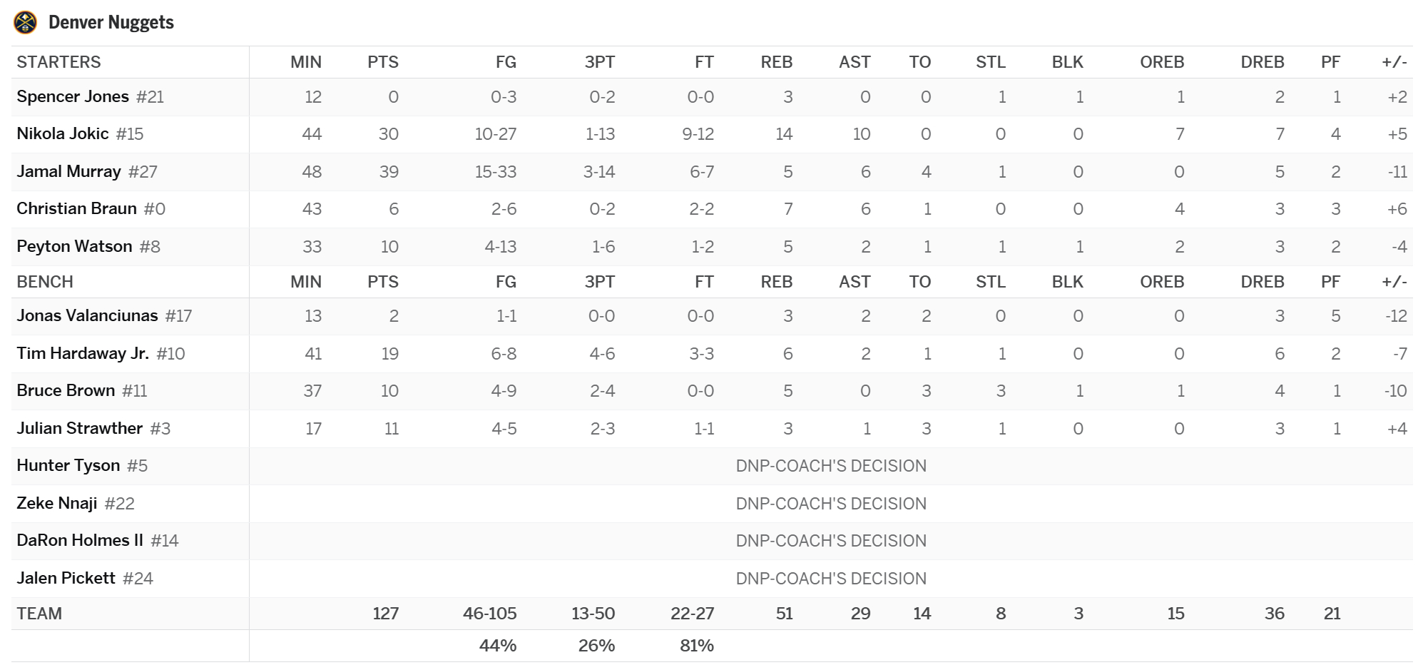 双加时大战,尼克斯134-127战胜掘金,取得8连胜。