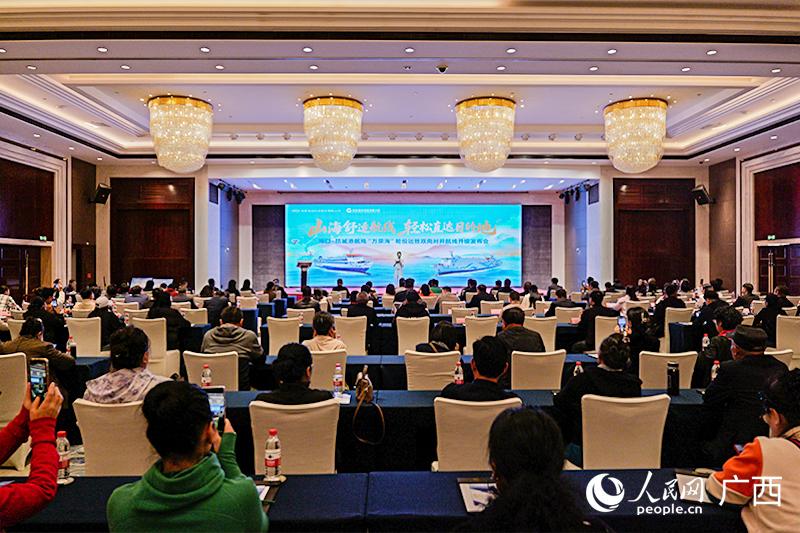 发布会现场,旅行社代表推出桂琼联动特色旅游线路,深度融合两地优质景点、住宿资源,定制专属优惠套餐,将航线优势与文旅资源精准对接,为两地文旅产业协同发展开辟新路径。