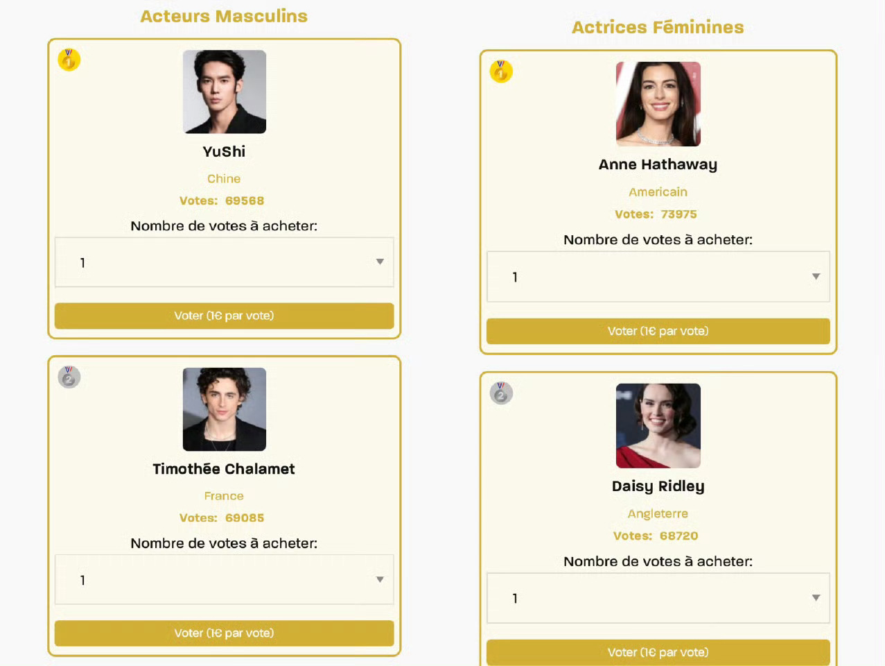 2025年欧洲世界电影节(Europe World Film Festival)“全球观众最喜爱演员(观众选择奖)”,于适获得了第一名!这奖得花57万投票,国内粉丝很多投不了,纯粹是外国友人的喜爱度!