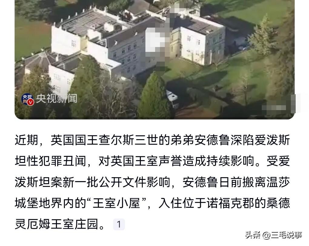 早知今日何必当初啊,爱泼斯坦案有很多名人权贵其中。 近日,英王之弟安德鲁深陷爱泼斯坦案丑闻连夜搬家。 看来也是要面子的。 当初的放纵让他付出名誉上的代价。 这都是他咎由自取。 萝莉岛实在是太触目惊心了,随着爱泼斯坦的死亡,事件也变得更加扑朔迷离。