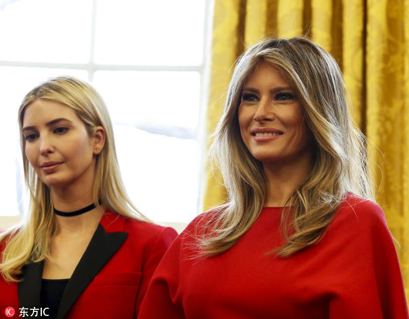 伊万卡和梅拉尼娅相差11岁,这对继母女同框合影有种疏离感。总感觉继母继女关系一般难亲密,大概她们也如此吧。