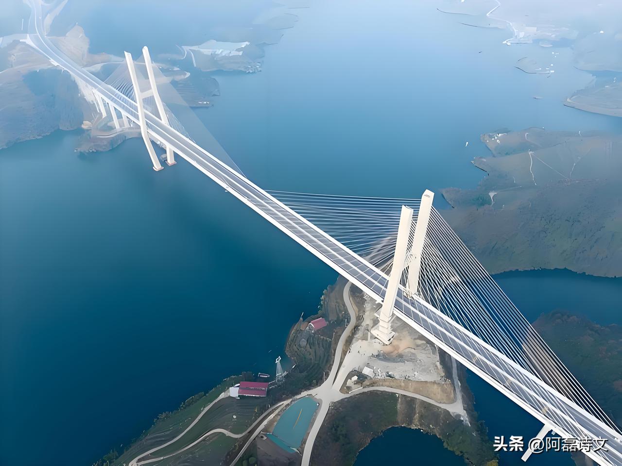官新高速安化县雪峰湖大桥,这为目前湖南省最大跨度钢混组合梁斜拉桥。
