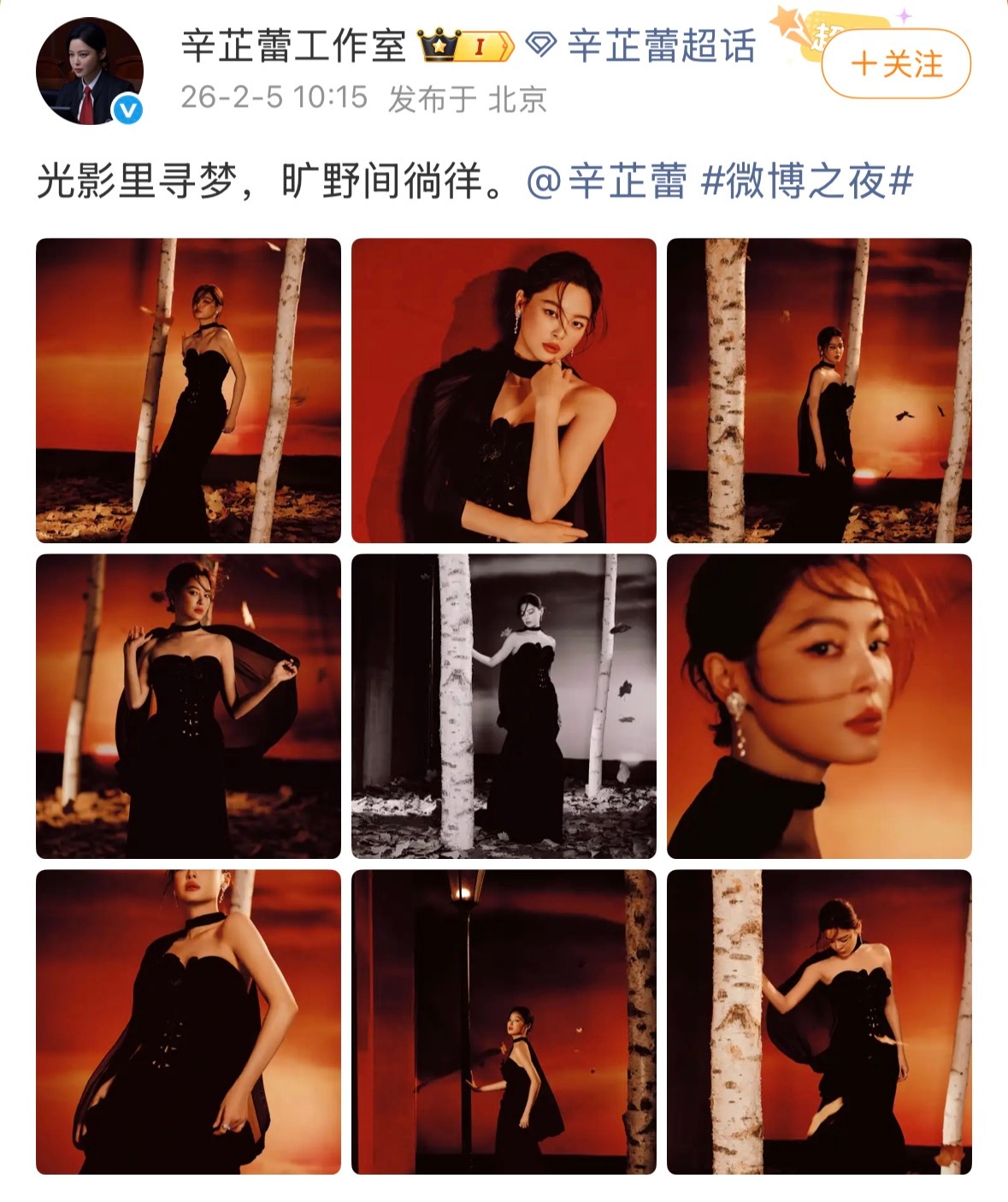 辛芷蕾微博之夜出发图辛芷蕾红枫氛围感大片好美!