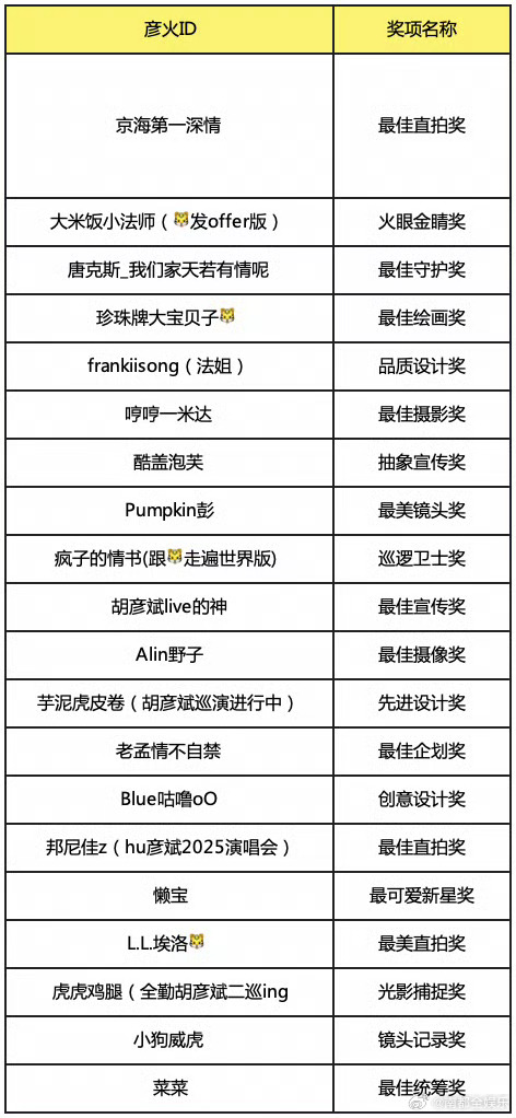 胡彦斌发长文回应给粉丝颁奖胡彦斌回应给粉丝颁奖5日凌晨,胡彦斌发长文回应在“彦火电子年会”给粉丝颁奖引发的讨论,他表示:“首先,我想说一件很现实的事:任何表彰,都不可能面面俱到。只要有获奖的人,就一定会有没获奖的人。这不是谁重要、谁不重要,而是任何‘阶段性总结’都会天然存在的遗憾。但请你们一定相信—没有被今天提到,不等于没有被看见。而我始终相信:时间会给出最真实的答案。陪伴本身,就是资格。如果你今天觉得自己没有被看见,我想对你说:你走过的路,时间会记得。你付出的心,我也会慢慢看见。我们继续一起走。”