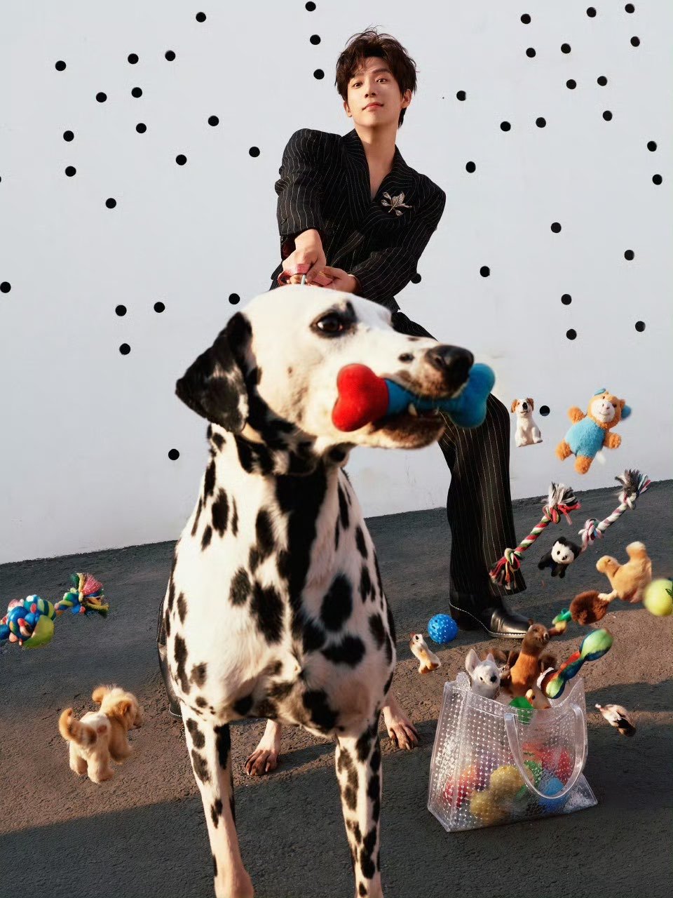 王安宇斑点狗 王安宇牵斑点狗好萌的狗狗