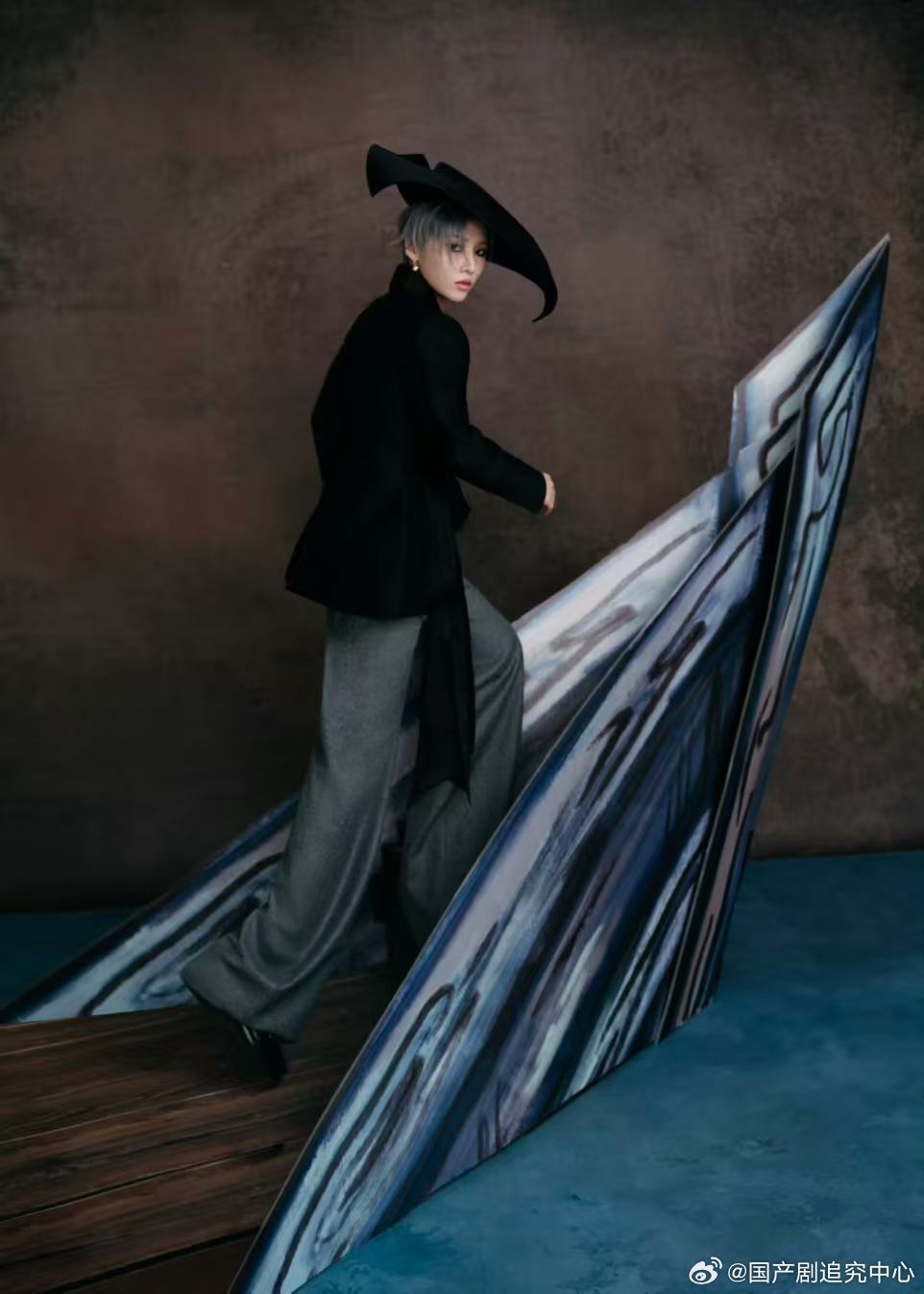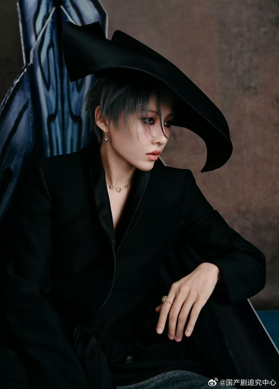 刘雨昕复古宽檐帽 微博之夜的摩登复古风太绝!刘雨昕一顶黑色宽檐帽搭配简约服饰,干