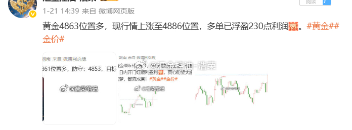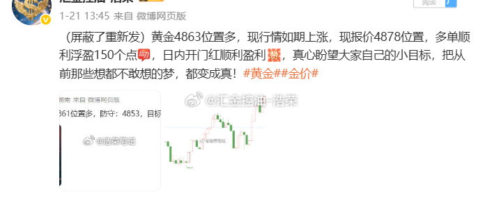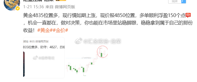 2026.1.21日博文公布4单,3胜1负!共收割590个点,投资是个长久之计,不是一朝一夕,所以不可操之过急,就算你现在亏损了,那也没什么可怕的。只要选择正确,失去的都会再回来,聪明人总是结伴而行,把握做单时机,掌握行情动向,方可获胜!黄金 金价