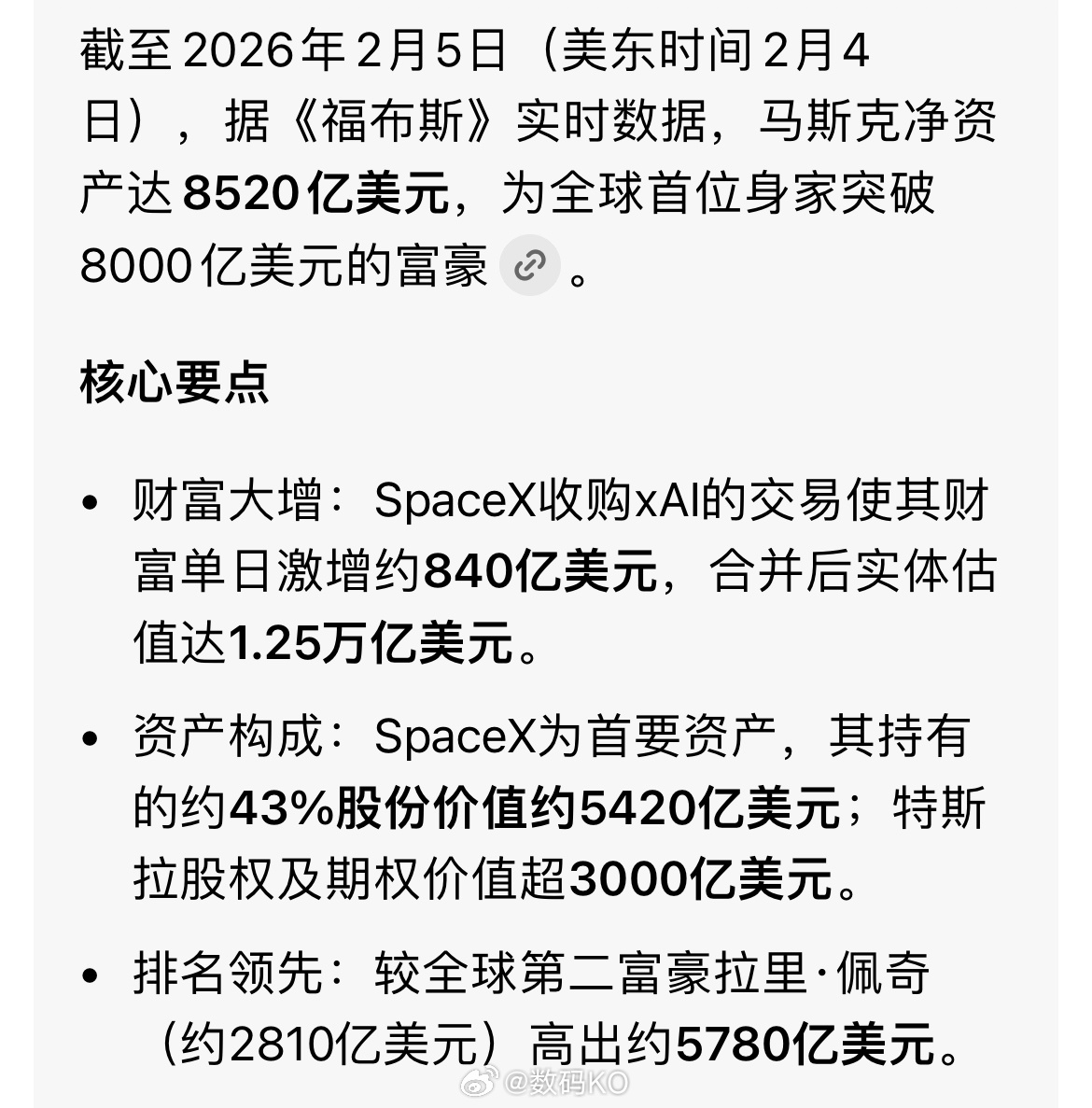 追觅CEO称几年后成为世界首富追觅CEO和小撒(撒贝宁)有个约定,几年后,当我成为世界首富的时候,我还要对他凡尔赛’,说我对钱没有兴趣。截止目前,世界首富马斯克净资产达8520亿美元,较全球第二富豪拉里·佩奇(约2810亿美元)高出约5780亿美元。