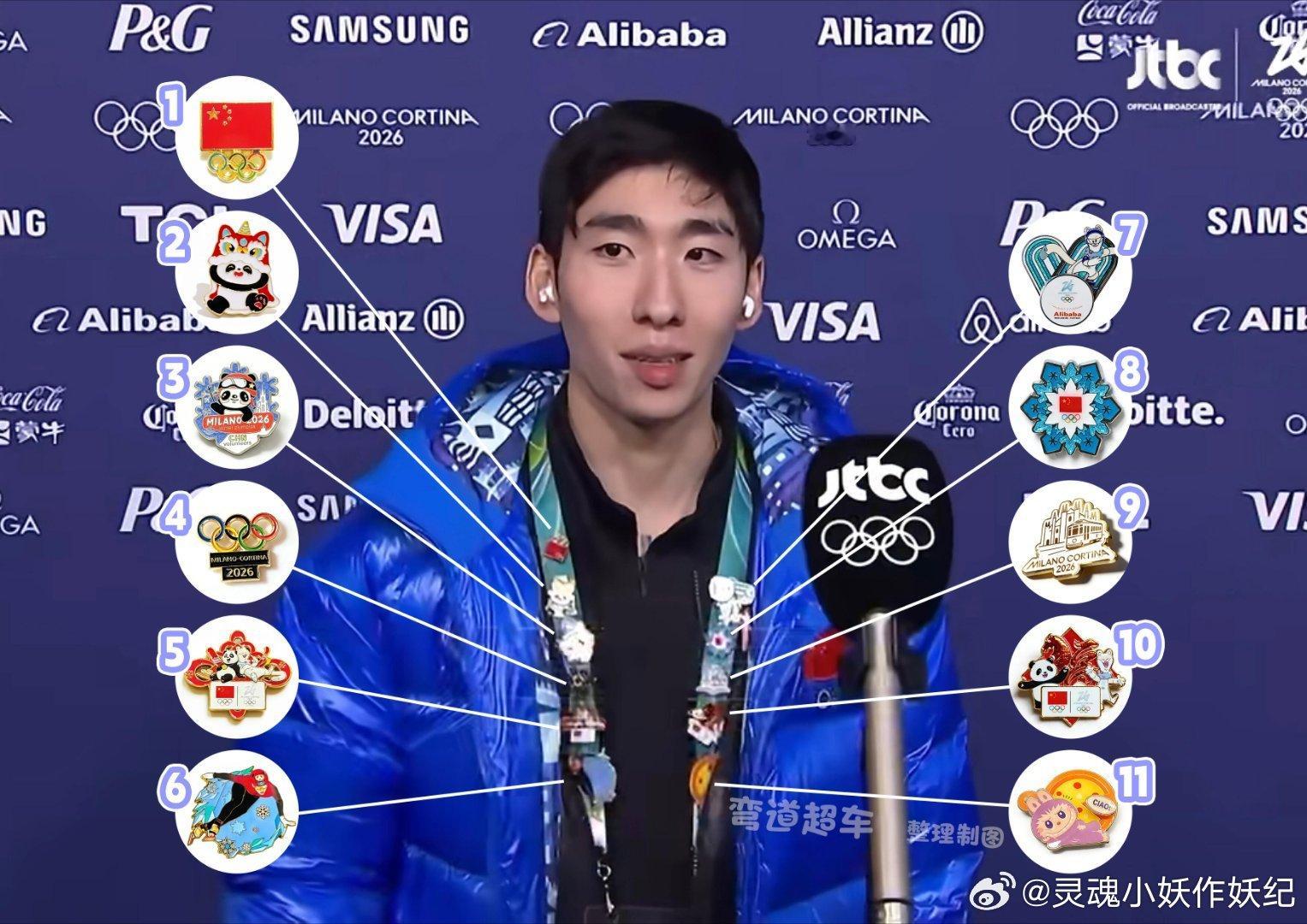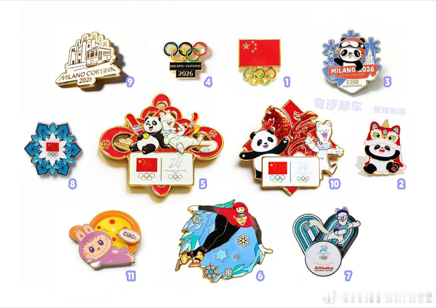 林孝埈和志愿者交换pin林孝埈的很多可爱又精美的徽章①中国奥委会官方徽章(常青款);②国潮风可爱熊猫徽章;③“熊猫PANPAN”米兰冬奥会中国志愿者徽章;④2026米兰-科尔蒂纳冬奥会徽章;⑤中国代表团官方徽章(中国结款)!⑥林孝埈专属pin;⑦阿里巴巴的赞助商徽章;⑧中国代表团官方徽章(雪花款);⑨韩国代表团官方徽章;⑩中国代表团官方徽章(马年福字款);最后是泡泡玛特米兰冬奥会志愿者限定徽章cr 弯道超车