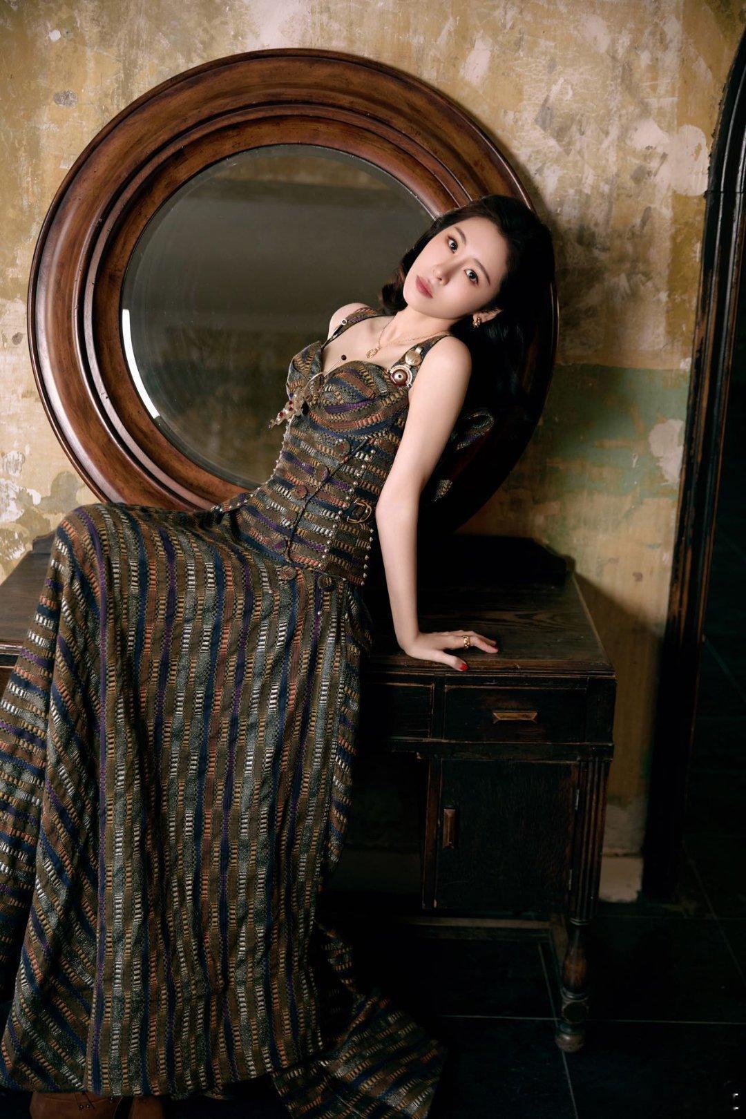 张碧晨美得有点超过了 美拉德色系长裙适配度拉满,金属光泽在阳光下氛围感拉满,中世
