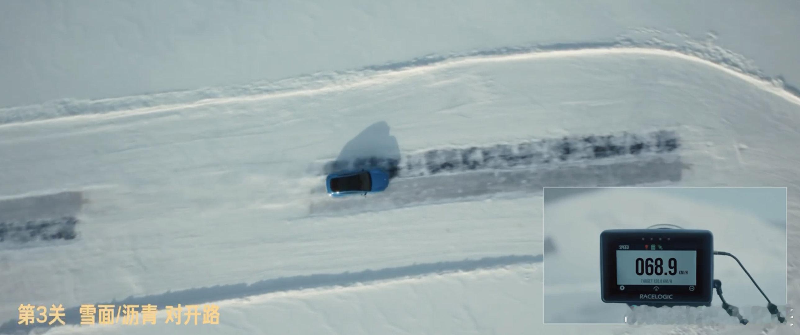 这次挑战的项目也很实在,地穿甲、紧急避障、雪-沥青混合路面、螺旋弯道、冰雪飞坡,全是日常能遇到的场景。混合路面不拽舵、不甩尾,弯道轨迹准,飞坡落地也稳,说明电控调校真的下功夫了。