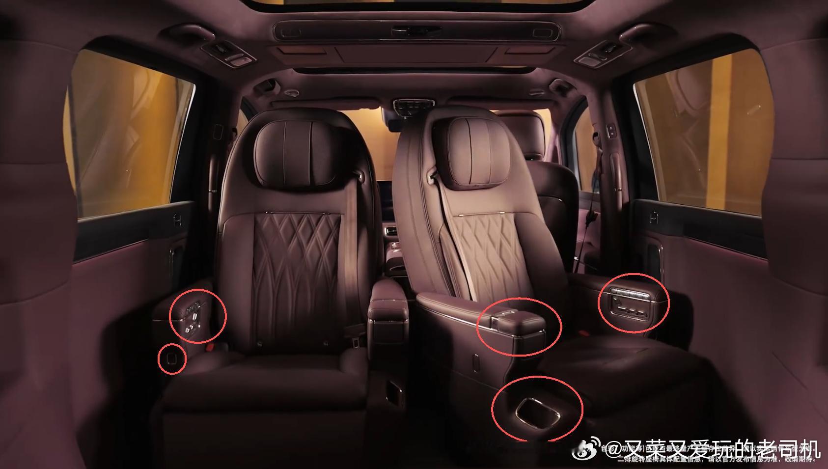 智界V9的官方内饰视频中,大家可要注意看细节哦:二排座椅右扶手上多个按键,且应该打开后可是个小桌板,左扶手似乎也能打开上盖板?二排座椅左右侧下方都有两个小空间,这是放手机和杯子的吗?三排边上的扶手似乎也能打开上盖(下面是储物空间么)?,而且从按键上来看,三排座椅应该不止靠背可调节?还有其它各种细节,看不太清不容易猜测,这车真是越来越有意思了。