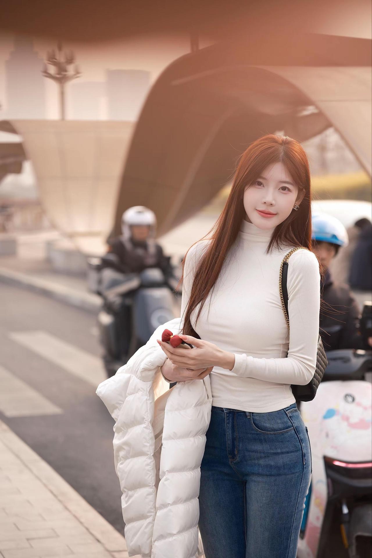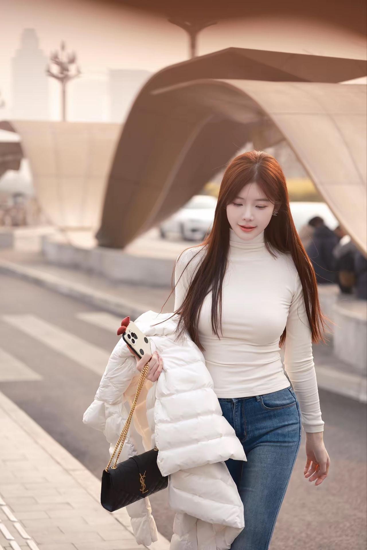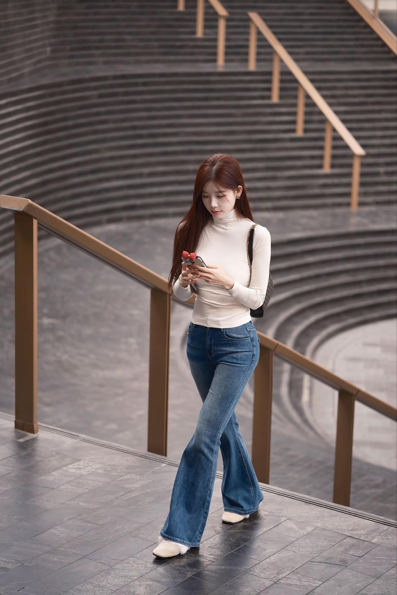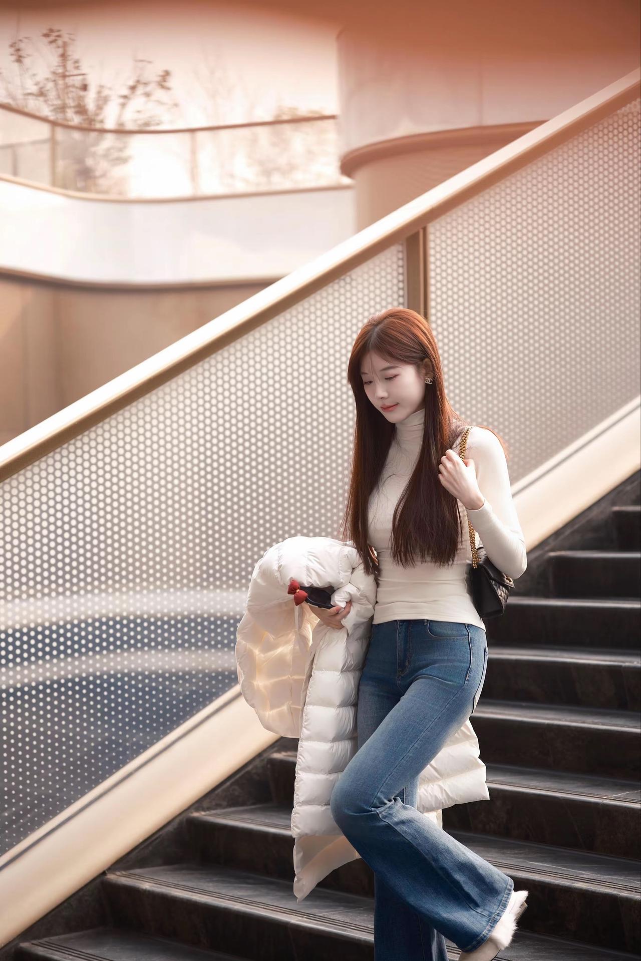 ✨ 「一抹白+一抹蓝」的松弛感公式|冬日时髦精的万能公式 软糯高领针织裹住温柔,垂坠喇叭裤拉长线条,黑色菱格链条包点睛利落。 羽绒服随意搭在臂弯,步履间尽是轻盈—— ▫️ 金属阶梯映着阳光,是通勤也是街拍 ▫️ 树影斑驳的街道,随手定格慵懒氛围 ▫️ 低头回消息的瞬间,藏不住的随性态度 “基础款穿出高级感,只需一点蓝调呼吸感” OOTD 日常穿搭 显瘦神裤