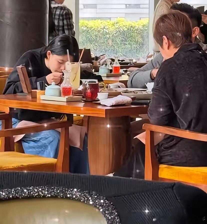 小菲和12岁女儿现身广州餐厅吃饭,父女俩关系亲近。小玥儿留着一头又黑又长的头发,