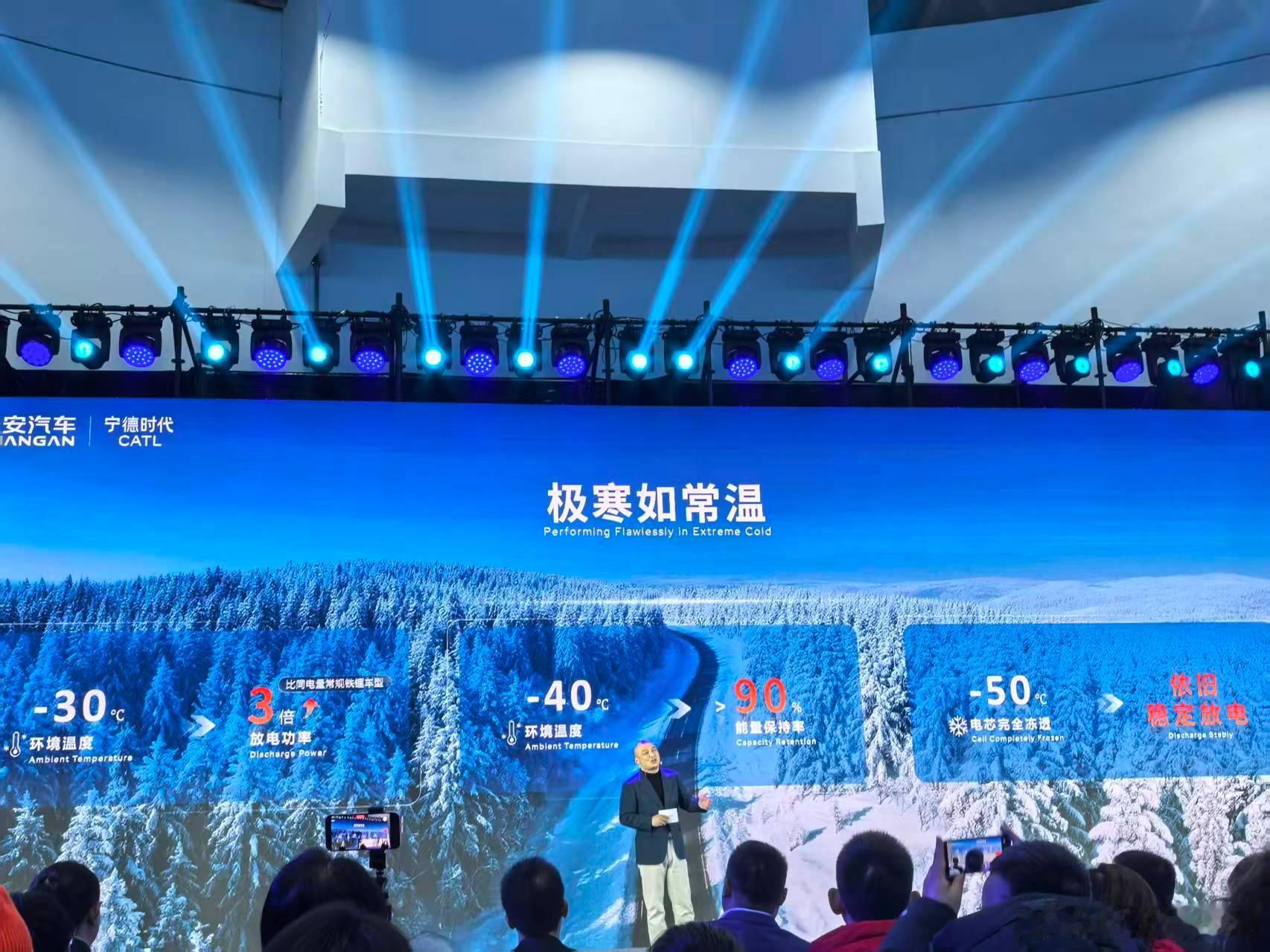 长安联合宁德时代发布不怕冷钠电池汽车黑科技在长安汽车天枢智能新安全成果发布暨钠电战略全球发布会上,宁德时代首席技术官高焕发布宁德时代与长安汽车联合打造的全新“钠电池”。新车情报局