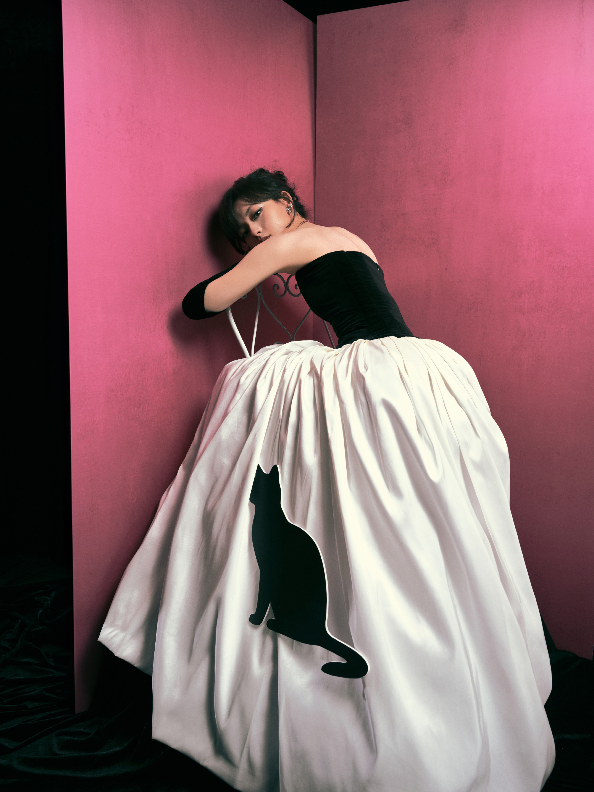 文淇裙子上有只黑猫 文淇和赫本风的适配度太高了吧!微博之夜文淇一袭黑白礼裙,上身
