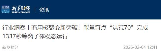 成功了!中国向世界宣布重大科技成果! 2月2日,上海能量奇点公司宣布,他们的“洪荒70”装置跑出了1337秒的稳态长脉冲等离子体运行。 别看就这几千秒,这可是全球范围内,第一次有商业公司能做到这种程度,背后的意义大到不敢想。 可能很多朋友会问,“洪荒70”是啥?说白了就是咱们常听的“人造太阳”,只不过它不是国家实验室那种超大装置,是商业公司研发的,体积更紧凑,却能完成同样的硬核任务。简单讲,就是在地球上模拟太阳发光发热的原理,造出清洁又用不完的能源。 咱们平时用的电,要么靠烧煤,要么靠水力、风力,要么靠核能,烧煤污染大,水力风力受天气影响,传统核能还怕泄漏,但“人造太阳”不一样,它用的燃料从海水里就能提取,而地球上海水够人类用上亿年。 而且这东西特别安全,没有核泄漏的风险,也不会排放温室气体,烧完之后只产生氦气,对环境一点污染都没有。要是能真正投入使用,以后咱们再也不用愁电费,也不用怕环境污染,子孙后代都能受益,这才是真正的长远打算 这次上海能量奇点公司可不是随便试试就成的,“洪荒70”是他们自主研发的全高温超导托卡马克装置,前几次实验,他们也取得过不错的成绩,去年11月就启动了长脉冲运行实验,今年1月初还实现了120秒的运行。 很多人不知道,“人造太阳”最难的不是造出来,是让它稳定运行,就像咱们烧火,不光要点燃,还得让火一直烧得均匀,不能忽大忽小、忽明忽暗。 “人造太阳”需要在上亿度的超高温下,把等离子体牢牢“困住”,还要保持稳定,稍微出点差错,实验就失败了。 之前全球范围内,只有少数几个国家的“国家队”实验室,能让“人造太阳”稳定运行上千秒,商业公司因为资金、规模的限制,从来没人能做到这一点,大多只能运行几十秒、上百秒,连千秒的门槛都碰不到。 中国这次就不一样了,这家上海的商业公司,直接突破了千秒大关,这意味着,咱们国家的“人造太阳”技术,已经从实验室走向了商业化,离真正点亮千家万户,又近了一大步。 可能有人会说,不就是多运行了几百秒吗,有啥值得骄傲的?这话可就错了。 要知道,从120秒到1337秒,看似只是数字的增长,背后是无数技术的突破。科研人员改进了装置的壁处理方式,降低了等离子体的杂质,还优化了控制系统,每一步都不容易。 能量奇点公司,2021年才成立,算是这个领域的“年轻人”,成立这几年,他们不炒作、不张扬,一门心思搞技术,这次的突破,也不是偶然,是他们上千次实验、一次次改进积累来的成果,背后藏着无数科研人员的心血。 再看看国际上的情况,美国、英国也有不少公司在搞“人造太阳”,但他们要么路线不一样,要么进度很慢,美国有一家公司,计划2028年前实现商业供电,但至今还没实现千秒级的稳态运行,比中国慢了一大步。 更值得一提的是,咱们国家现在是“国家队+商业队”双轮驱动,国家实验室搞大型装置,攻克核心难题;商业公司搞小型、紧凑的装置,加快商业化进度,降低研发成本,这种模式,让咱们的“人造太阳”技术,进步得越来越快。 有人可能会问,这东西什么时候能真正用上?据业内专家说,全球范围内,“人造太阳”商业化供电,大概要到2050年前后,但中国现在进度这么快,说不定能提前实现,说不定咱们这代人,就能用上“人造太阳”发的电。 这件事不光是一项科技突破,更是咱们国家科技实力的体现,以前很多高科技领域,咱们都是跟着别人跑,现在不一样了,在“人造太阳”这个领域,咱们已经开始领跑全球,这就是咱们的底气,也是给子孙后代留下的最大财富。 科技的进步,从来都不是一蹴而就的,每一次突破,都离不开科研人员的坚守和付出。他们埋头钻研、默默奉献,不为名利,只为让国家变得更强大,让咱们的生活变得更好,这份坚守,比任何口号都有力量。 新春佳节越来越近,这份科技捷报,也是一份最好的新年礼物,它告诉我们,中国的科技,正在一步步崛起,正在攻克一个又一个世界难题,相信在不久的将来,“人造太阳”一定会照亮千家万户,让中国的科技之光,闪耀全球。 大家对此有什么看法呢?欢迎各位在评论区留言!