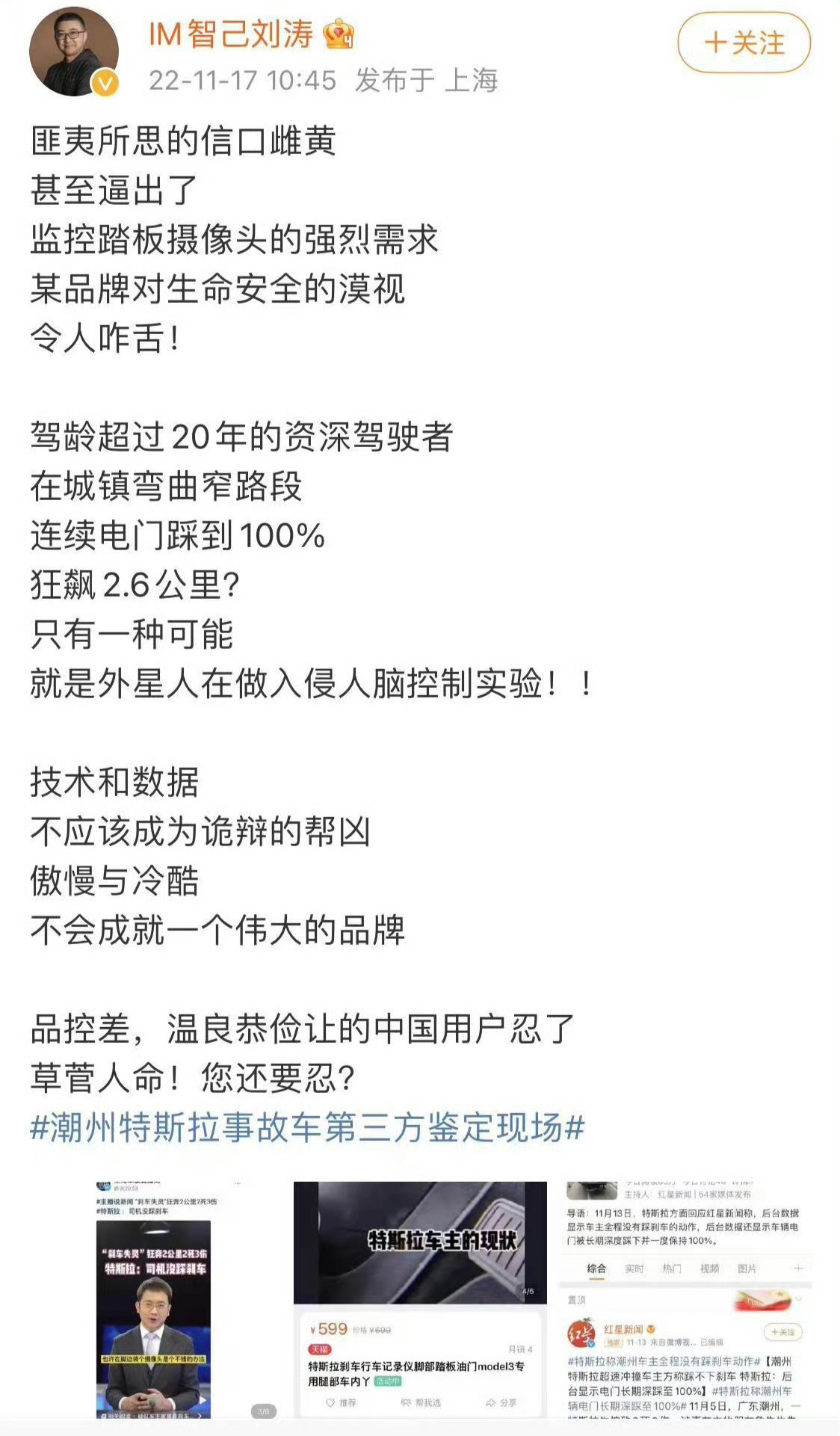 因为四年前的言论,IM智己刘涛发博向特斯拉道歉。事实证明,舆论不代表真相,冲动是