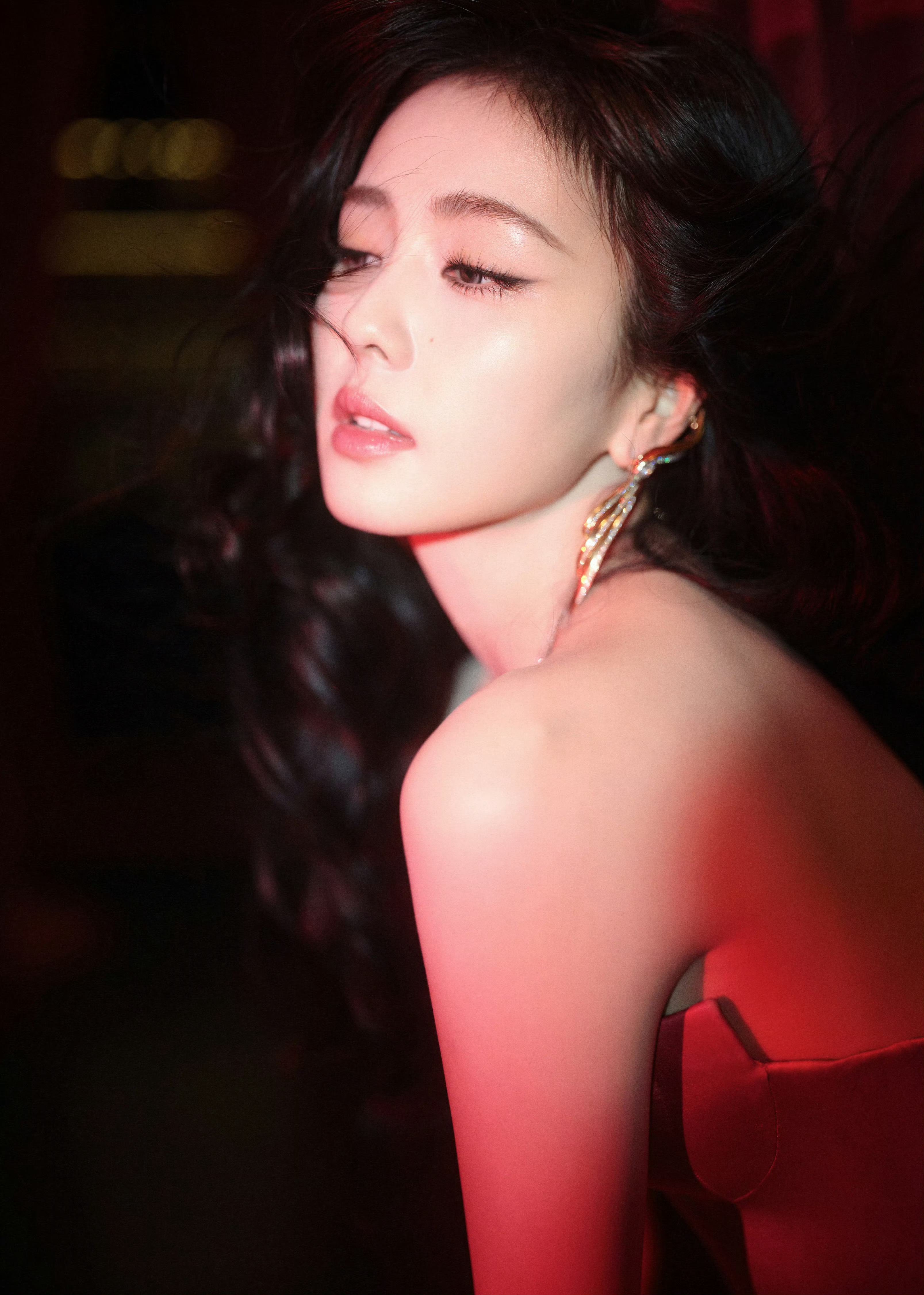微博之夜出图白鹿灼灼红裙白鹿漫画感卷发
