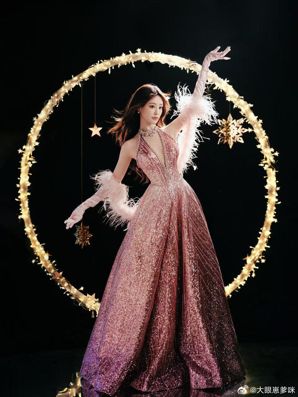 祝绪丹好粉的摩登女郎粉系摩登女郎上线✨流光面料衬得肤白胜雪,羽毛袖灵动俏皮,祝绪丹每帧都美到犯规🥹