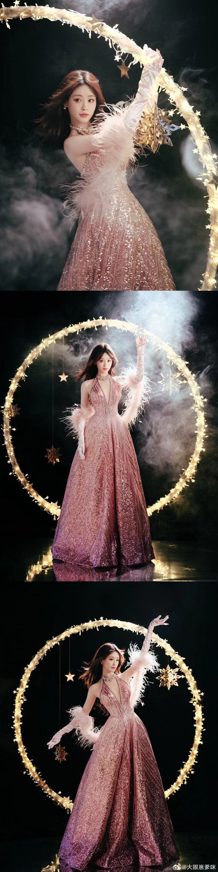 祝绪丹好粉的摩登女郎粉系摩登女郎上线✨流光面料衬得肤白胜雪,羽毛袖灵动俏皮,祝绪