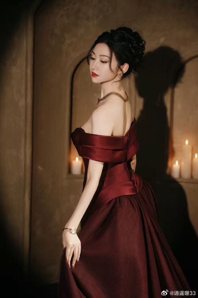 景甜状态不错啊酒红色露背缎面裙一穿,冷白皮在灯光下白到发光,一字肩把流畅的肩颈