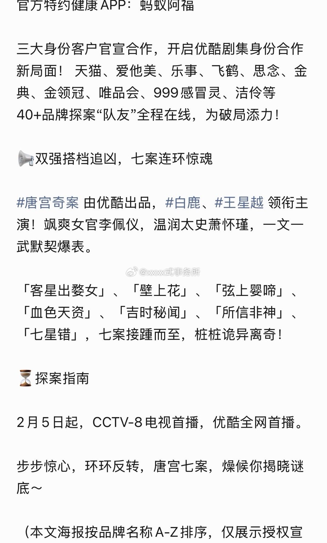白鹿 王星越唐宫奇案之青雾风鸣招商40+品牌,共赴这场生死谜局,不愧是优酷开年悬疑大戏
