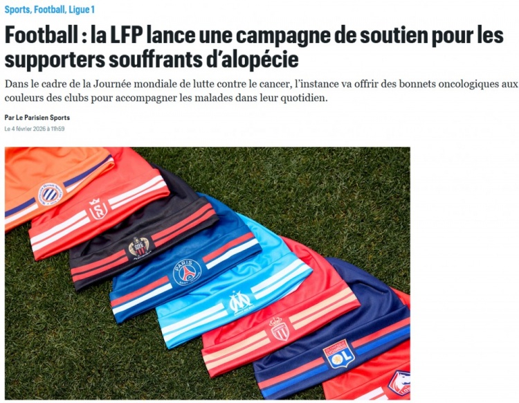 直播吧2月5日讯《巴黎人报》报道,法国职业足球联盟于2月4日世界抗癌日宣布启动一项旨在支持因接受治疗导致脱发的球迷的团结活动。