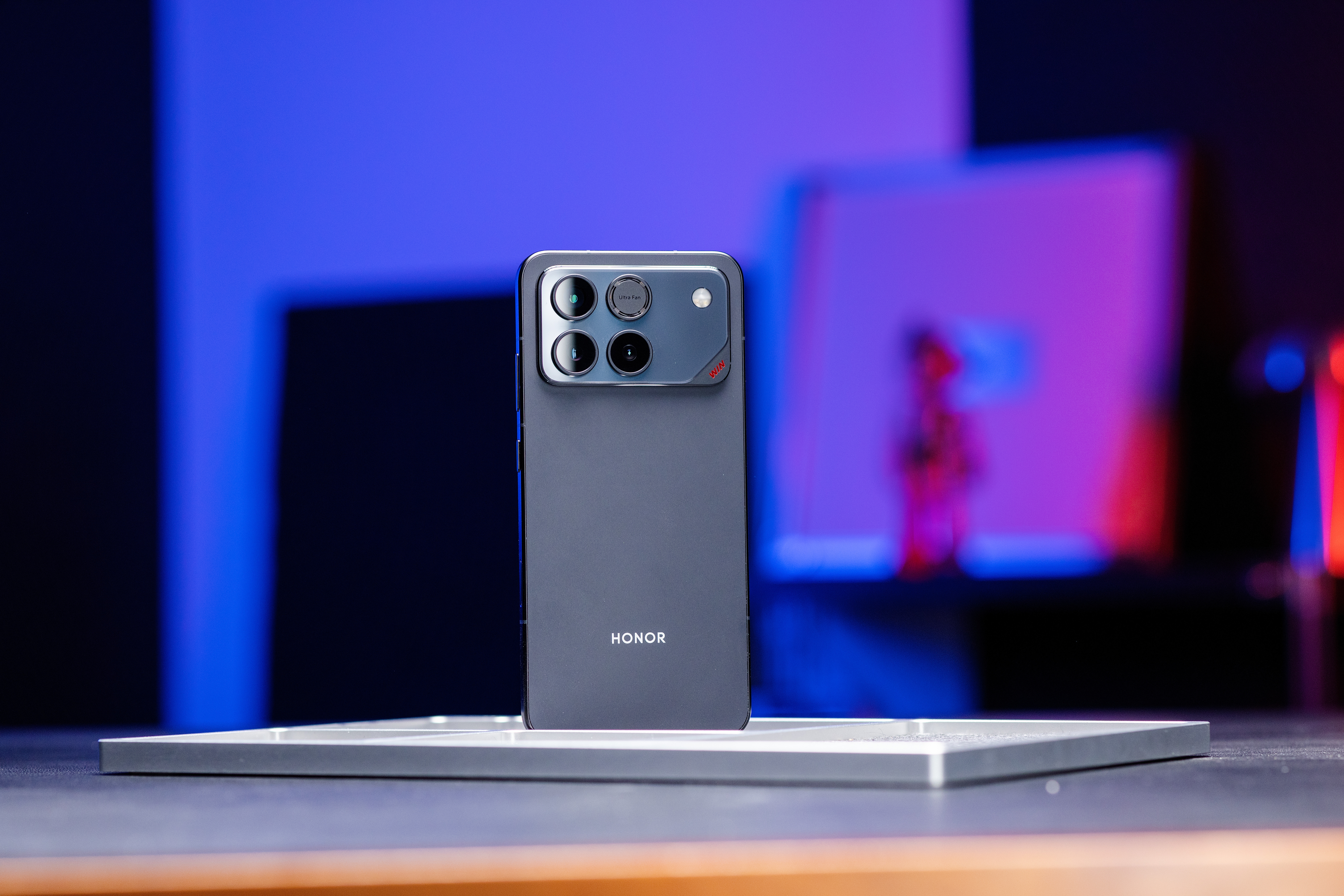 荣耀WIN的设计开门见山、简单直接,整体是磨砂碳黑色,再点缀上红色的“WIN”,克制之中又有迸发的活力,这种设计大家喜欢吗?