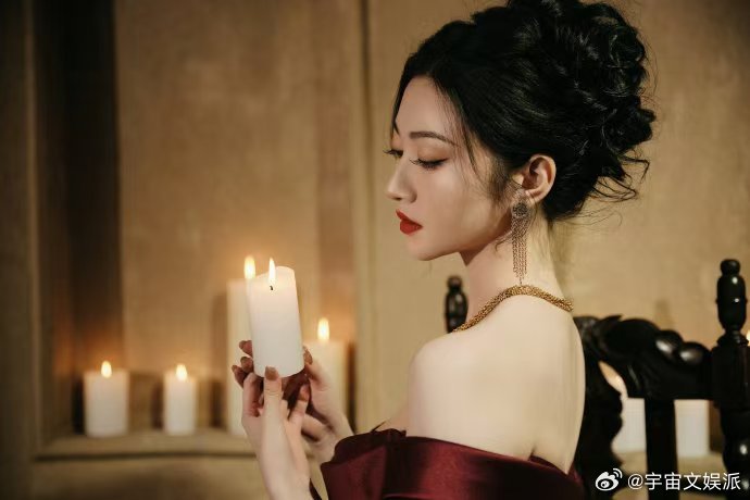 景甜肩颈线条 哇塞!景甜穿红色礼服,肩颈线条又直又顺,颈链与之相得益彰,抬眼瞬间柔光四溢,太鲨我!