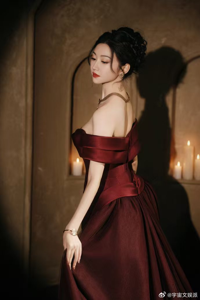 景甜肩颈线条 哇塞!景甜穿红色礼服,肩颈线条又直又顺,颈链与之相得益彰,抬眼瞬间