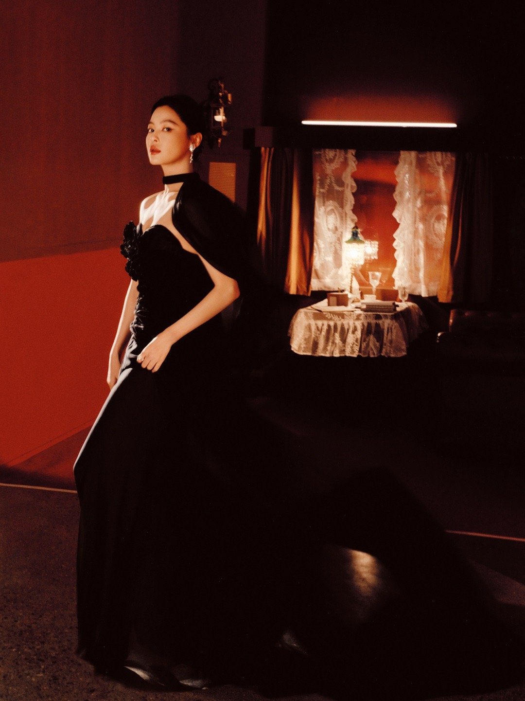 辛芷蕾微博之夜ES高定丝绒与薄纱的绝佳平衡!辛芷蕾一袭ES高定亮相微博之夜,在暮色与落叶间定格电影画面,抬眼间尽是故事感。