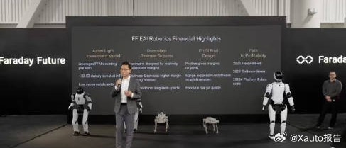 贾跃亭发布人形机器人2月5日,贾跃亭执掌的FF在美发布首批具身智能机器人,含三大系列且将推轮臂系列,同时推出“三位一体”EAI生态战略。贾跃亭赴美创业八年未归,曾重塑濒临破产的FF。FF发布具身智能机器人