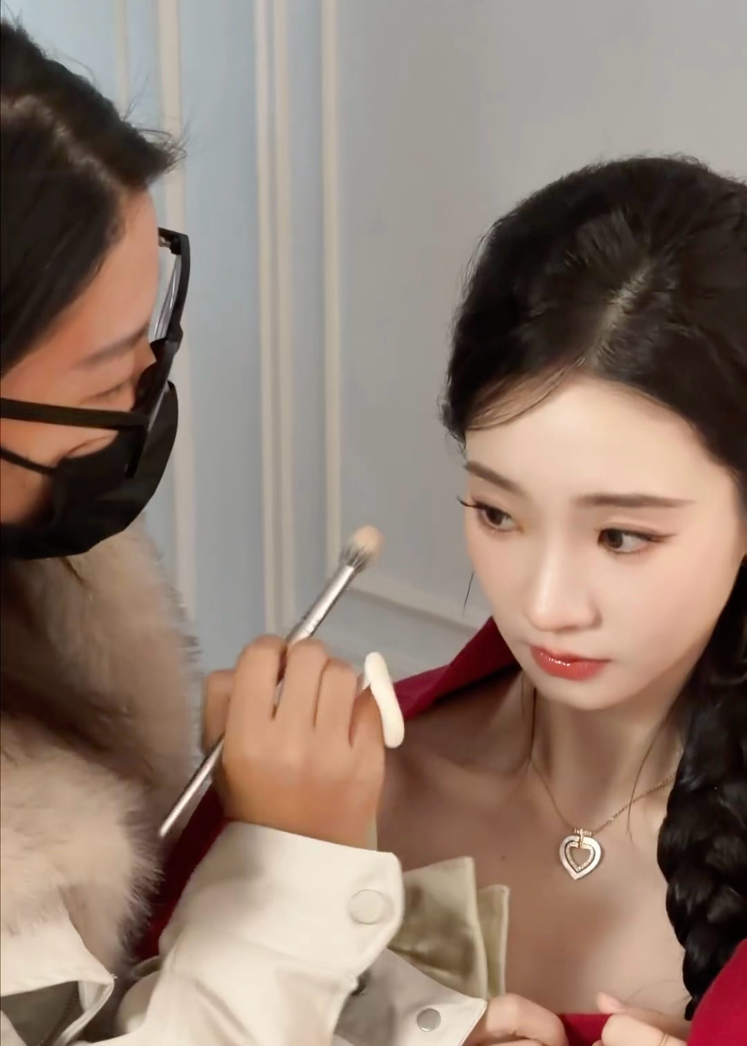 化妆师坐张艺凡腿上补妆 抽象届又来新人了!看张艺凡补开头觉得她眨眼睛乖乖的像个小