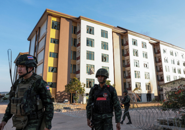 【泰国军方曝光电诈园区:内设“多国警察局”,多语言诈骗话术脚本、电话清单散落一地】电诈园区内设假冒多国警察局 泰国军方2月2日透露,去年泰柬边境冲突期间,泰国军方攻占了位于柬埔寨边境小镇奥斯马(O’Smach)附近的电诈园区,并在园区内缴获大量跨国诈骗证据,包括假冒各国警察局的道具场景和诈骗对话脚本等。